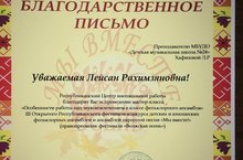 Поздравляем Хафизову Лейсан Рахимзяновну с прекрасными результатами по итогам III Республиканского фестиваля-конкурса "Мы вместе" (Казанская осень)!!! Фольклорный ансамбль "Туганай" получил звание Лауреата I степени. Загидуллина Лола стала Лауреатом I степени в сольной номинации. Зарипова Айсылу и Сафина Алия стали Лауреатами II степени (каждая - в сольной номинации). Молодцы!!!!Благодарим за работу и желаем дальнейших творческих успехов!!!