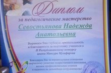 Преподаватель ДМШ №24 Севостьянова Надежда Анатольевна была удостоена Диплома "За педагогическое мастерство". Поздравляем с заслуженной наградой. Ученица Надежды Анатольевны Сиразиева Лия получила Диплома Участника конкурса.