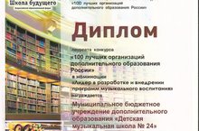 ДМШ № 24 - ЛАУРЕАТ ВСЕРОССИЙСКОГО КОНКУРСА "100 ЛУЧШИХ ОРГАНИЗАЦИЙ ДОПОЛНИТЕЛЬНОГО ОБРАЗОВАНИЯ" 21.01.2016