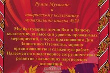 Администрация школы выражает благодарность учащимся, руководителям (Хафизовой Л.Р., Баймяшкиной Н.И.) и концертмейстеру (Елгиной Н.Ю.) Желаем здоровья, творческого роста и новых программ.