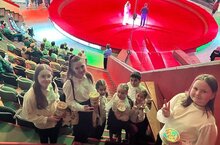 Интересное событие для учащихся отделения скрипки состоялось 10 апреля. Младший ансамбль скрипачей «Весёлые нотки» и старший ансамбль в составе Хабибуллинной Диляры, Вафина Амирхана и Шаймуллиной Дианы играли в Казанском Государственном цирке. Ребятам предоставилась возможность выступить перед началом представления цирковой программы «Цирк из сапога». Юные музыканты исполнили известные произведения - «Гамма-джаз» С.Медведовского, "Кукарача", "Колыбельную", "Порги и Бес" Дж. Гершвина, "Чечетка" Е.Джонса и др. После выступления ребят пригласили посмотреть это невероятно интересное цирковое представление. Все были счастливы и довольны!