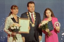 26 декабря в Казанской Ратуше прошло ежегодное награждение стипендиатов мэра г.Казани. В их числе и наша яркая звездочка, ученица вокального отделения - Гафиятуллина Лиана. Безусловно, это результат упорного труда, стремления, настойчивости и поддержки родителей. Было очень приятно, что в год педагога и наставника дипломами были награждены и наставники стипендиатов. Поздравляем Звонареву Ларису Витальевну с этой наградой! Огромную благодарность выражаем директору школы - Румие Мусаевне за поддержку, инициативу и веру в наших замечательных учеников! Это наша общая победа!