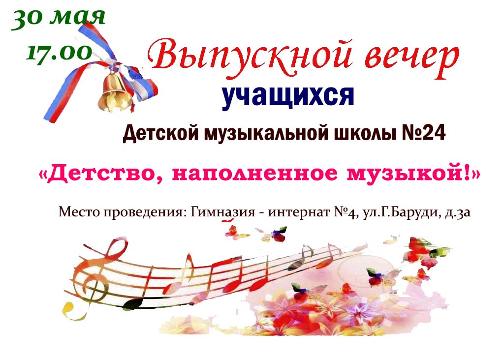 Желаем, чтобы вы были счастливы в жизни и делились с людьми тем прекрасным, что вы обрели в стенах нашей школы и с гордостью несли звание Выпускника Детской музыкальной школы №24! -