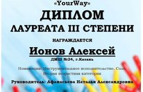 Панкратова Яна - Лауреат III степени, преподаватель Александрова Л.А., концертмейстер Белянкин А.В.