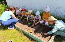 Дети с удовольствием участвовали в посадке цветов (бархатцы, ирисы, ромашка, космея) и овощей (горох, свёкла, тыква, картофель).