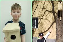 Папа Хрисанова Гордея своими руками смастерил вот такой скворечник. Гордей тоже не отставал в помощи.