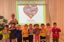 Сегодня в нашем детском саду прошло познавательное мероприятие «Мой Татарстан, ты лучше всех», посвященное Дню Республики Татарстан и города Казани. В начале мероприятия ребята прослушали гимн Татарстана. Затем с интересом участвовали в беседе о государственных символах Республики Татарстан, о родном городе Казани и его достопримечательностях. На празднике дети с увлечением играли в народные подвижные игры, танцевали под веселую татарскую музыку и с интересом просматривали видеоролики и презентации о малой родине.