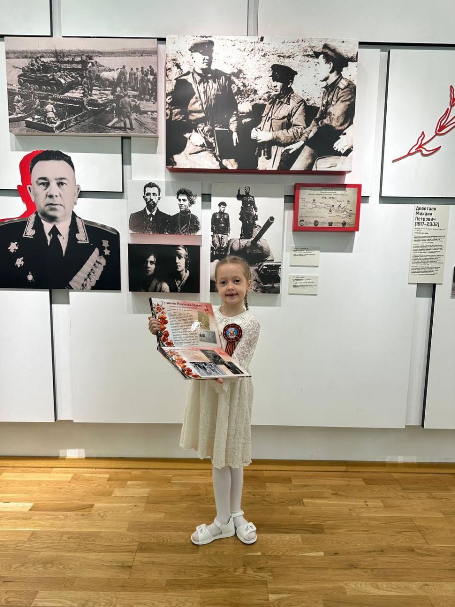 Наша воспитанница Бусыгина Варвара приняла участие в открытии музейной экспозиции, посвященной 80-летию Победы в КЦ "Московский". Варя презентовала авторскую книгу МАДОУ "Детский сад №252" в рамках проекта "Я знаю, помню и горжусь" и рассказала историю своего прапрадедушки Гулякова Николая Ильича - героя ВОВ.