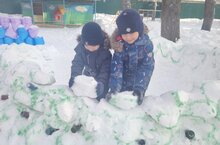 Наши воспитанники с радостью гуляют на свежем воздухе и с интересом наблюдают за зимними погодными явлениями. Дети старшей логопедической группы "Звёздочки" заметили, что в морозный день солнце светит особенно ярко, а снег искрится на солнце, создавая волшебную атмосферу. Самым любимым занятием любого ребёнка на прогулке – это же конечно подвижные игры!!! Ну и как тут не поиграть, когда воспитатель Флёра Гарифзяновна создала из снега разноцветную крепость, снежный грот и «окоп» украшенные цветными льдинками.