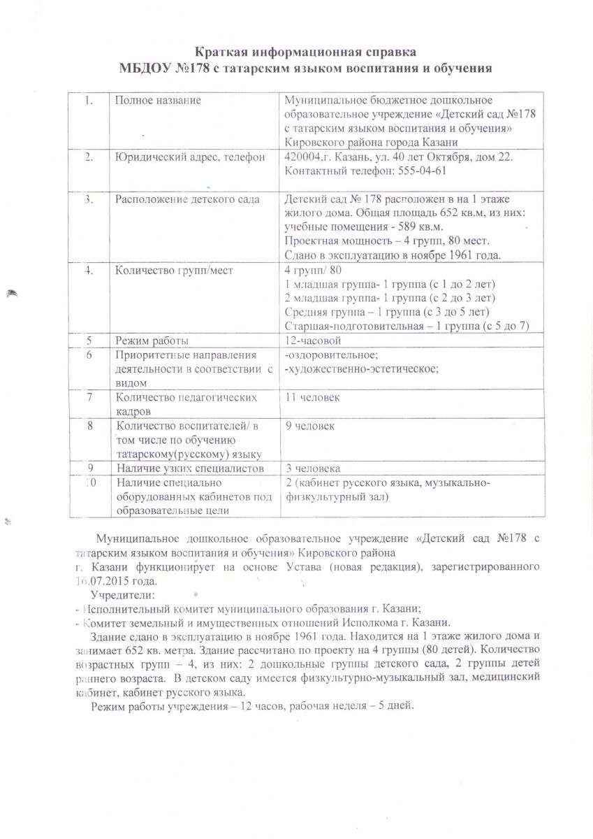 МБДОУ "Детский сад № 178 с татарским языком воспитания и обучения" Кировского района г.Казани (реорганизация)