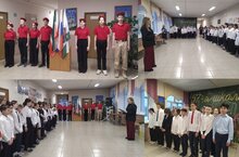 Мы вправе гордиться своей могучей и сильной страной, поэтому традиционно мы начинаем линейку с выноса флагов и исполнения гимнов Российской Федерации и Республики Татарстан.