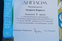 Поздравляем ученика 6А класса Андреева Кирилла, занявшего 1 место в республиканских соревнованиях по лыжным гонкам, в гонке на дистанции 3 км. свободным стилем.
