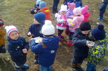 Бүген, бакчабызда бәйрәм символлары ала каргаларны балалар тәмле ботка белән сыйладылар, Бүген "Карга боткасы" булды. Бәйрәм рухы урамда бик кызыклы узды. Саф һавада "карга боткасы" ашау балаларыбызның күңелләренә бик хуш килде.