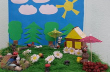 Беренче кечкенәләр төркемендә (тәрбиячесе Файзрахманова Рәфидә Рәфәгатовна) " Кояш" исеме астында әвәләү эшчәнлеге узды. Пластилинография юлы белән балалар кояш ясадылар. Кояш белән якыннан таныштылар. Кояш турында презентация карау, машинага утырып урманга бару балаларда зур кызыксыну уятты.