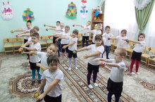 Балалар һәр көнне бакчага килүгә беренче хәрәкәтләрен иртәнге күнегүдән башлыйлар. Иртәнге күнегүләр балаларга көч, дәрт өсти, күңел күтәренкелеге тудыра, аппетитларын ача. Балалар иртәнге күнегүне тәрбияче Рәфидә Рәфәгатовна җитәкчелегендә бик теләп башкаралар, күнегүләрне тигез ясарга тырышалар.