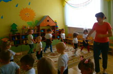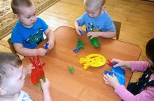 Дети первой младшей группы с интересом играют с прищепками.