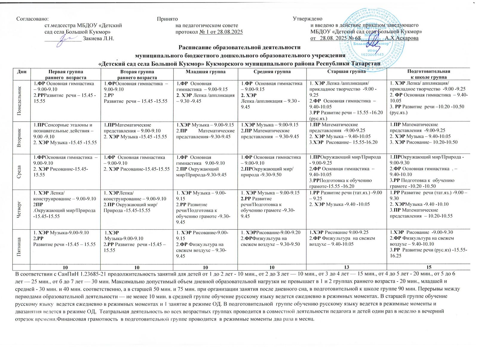 Расписание образовательной деятельности на 2025-2026 учебный год