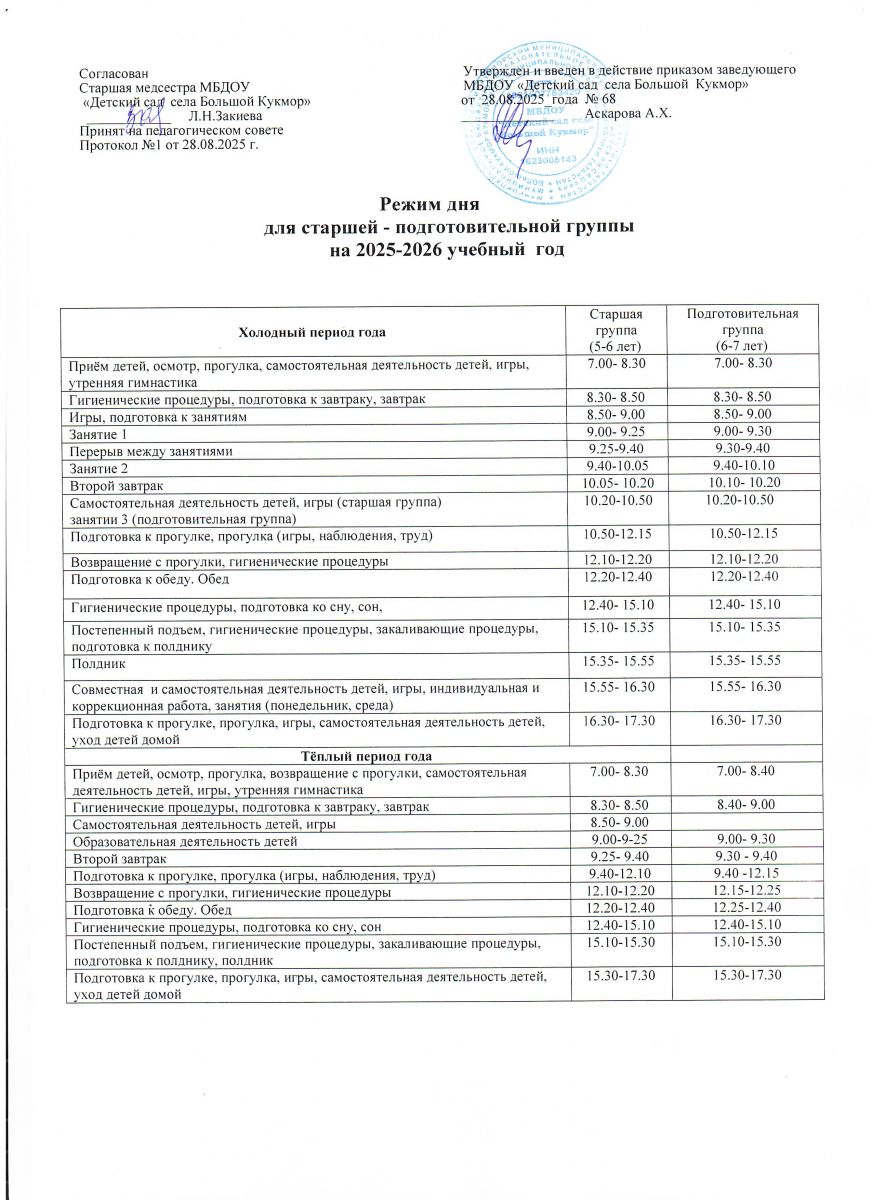 Режим дня на холодный период времени 2025-2026 учебный год старшей-подготовительной группы