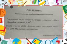 Хөрмәтле әти-әниләр, сезнен Зур Кукмара мәктәбенең актлар залында 14 ноябрь, шимбә көнне сәгать 12.00дә көтеп калабыз.