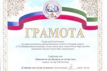 Конкурс "Мин бит татар малае"/"Мин бит татар малае!" конкурсы 17.02.2020Прошел районный конкурс "Мин бит татар малае!" по выявлению одаренных детей, развитию в детях национально-культурных ценностей татарского народа, укреплению связей между детским садом и семьей. Воспитанник Байлянгарского детского сада Зиннатуллин Адель Данилович принял участие в данном конкурсе и был удостоен Почетной грамоты в номинации "Самый талантливый мальчик"Искренне поздравляем нашего юного друга, желаем новых творческих успехов.