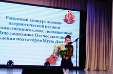Сегодня в РДК состоялся районный конкурс военно-патриотической песни и торжественного слова,посвященный Дню защитника Отечества и дню рождения поэта Мусы Джалиля. Воспитанница дошкольной группы Камалиева Айсылу достойно выступила со стихотворением Мусы Джалиля "Красная ромашка".