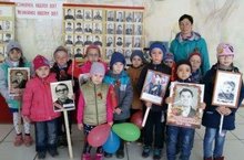 Бүген балалар бакчасына йөрүче нәниләр дә,сугыш кырында батырларча һәлак булган бабайларының фотосурәтләрен тотып,"Үлемсез полк" белән һәйкәлдә митингта катнашты.
