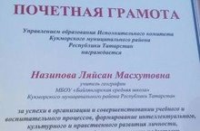 Мәктәбебез укытучысы Нәҗипова Ләйсән Масхутовна район мәгариф идарәсенең Мактау Грамотасына лаек булды.Котлыйбыз!!!