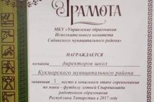Управление образования Сабинского муниципального района награждает директоров школ Кукморского муниципального района,занявших ПЕРВОЕ МЕСТО в зональном этапе соревнований по мини-футболу Летней Спартакиады работников образования Республики Татарстан в 2017 году.