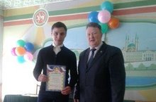 Кичә Кукмара районы Башлыгы Димитриев С.Д. уку алдынгыларын бүләкләде. Анда безнең укучыларыбыз Дилә Әминова һәм Динә Абдуллина, аларның әти-әниләре катнашты.