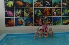Рәсемдә: укучыларыбыз бассейнда шөгыльләнгән мизгел