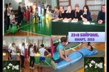 Бүген мәктәбебездә 23 февраль-Ватанны саклаучылар һәм Халыкара хатын-кызлар көннәренә багышланган "23+8" бәйрәме үтте. Кызлар -малайлар җитезлектә, тапкырлыкта үзара көч сынаштылар.1урынны-6 сыйныф укучылары,2 урынны-7 сыйныф,3 урынны-5 сыйныф укучылары бүлеште.