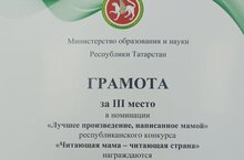 Поздравляем ученицу 3-го класса с III местом в Республиканском конкурсе "Читающая мама-читающая страна" в номинации "Лучшее произведение, написанное мамой".