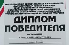 Поздравляем победителя в Республиканском конкурсе рисунков и видеороликов "Буду бдительным на льду и на воде" ученицу 9-го класса Гатину Лейлу.Молодцы