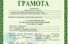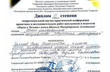 Ученик 4 класса Саляхов Раяз (руководитель Рахимова Р.К.) занял 3 место в межрегиональной научно-практической конференции проектных и исследовательских работ школьников и педагогов "Наука и человек" имени Ш.М.Ахметшина. Поздравляем!!!