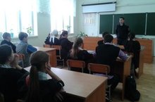 Мәктәптә 5 - 9 сыйныф укучылары өчен бәлигъ булмаганнар бүлегеннән килгән полиция кече лейтенанты Нуриев Р.Р. административ хокук бозулар, терроризм - экстремизм буенча чыгыш ясады.