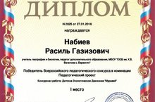 Учитель географии и биологии нашей школы Набиев Расиль Газизович участвовал в Всероссийском педагогическом конкурсе в номинации