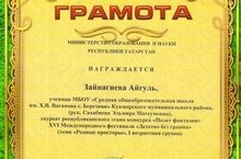 Ученица 7 класса Зайнагиева Айгуль стала лауреатом республиканского этапа конкурса "Полёт фантазии" XVI Меңдународного фестиваля "Детство без границ".