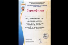 По итогам Всероссийского конкурса "Человек и Природа" в 2012-2013 учебном году стали призёрами ученики нашей школы Ризванов Булат - 6 класс и Шарафиева Тансылу - 7 класс. Поздравляем этих учащихся и их руководителя Набиева Расила Газизовича с достигнутым успехом.