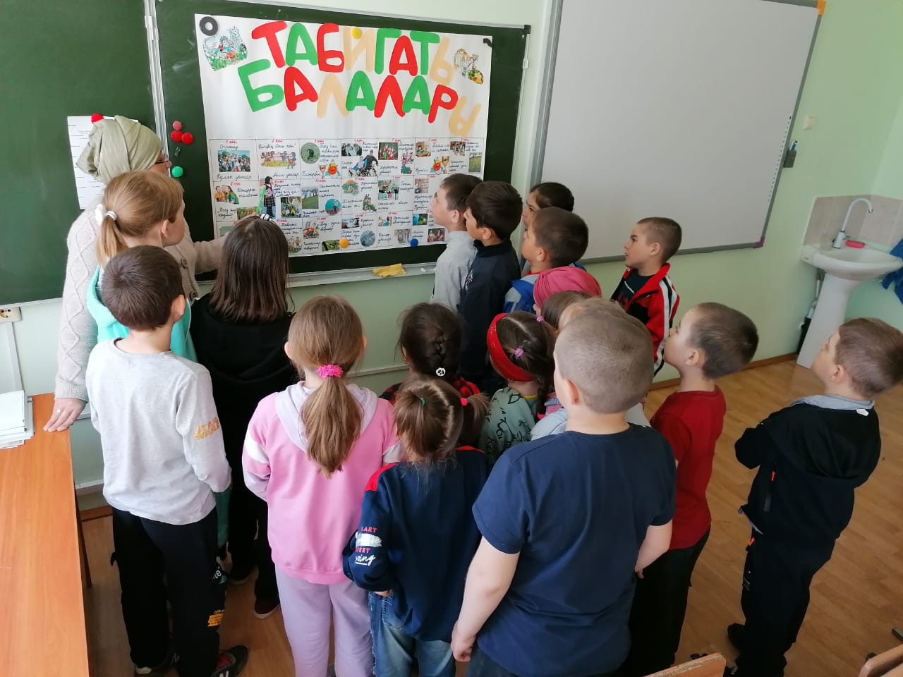 19 май көнне «Җиңү дәресе» акциясе кысаларында 4 сыйныф укучылары белән «Без хәтерлибез! Без горурланабыз!» дигән тематик-күргәзмә буенча әңгәмә үткәрелде.