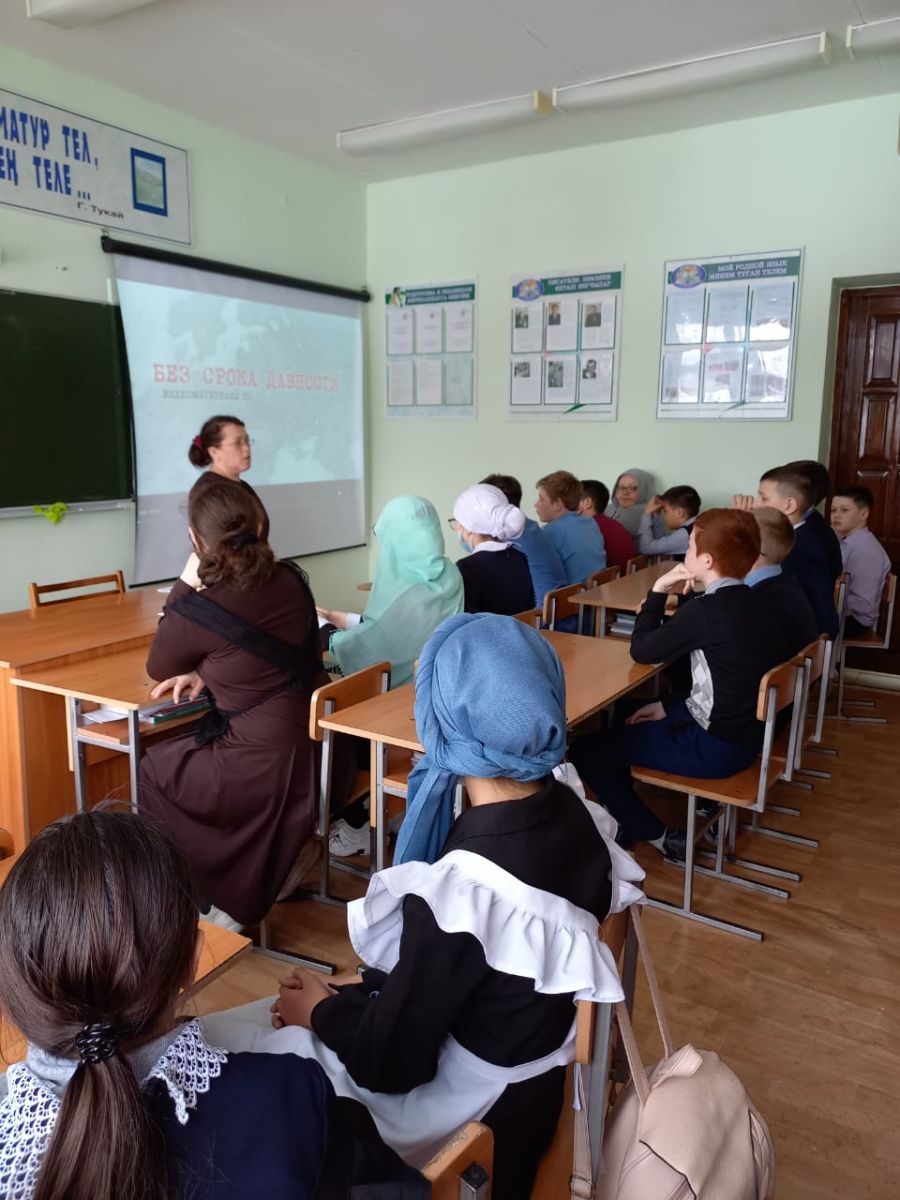 19 апрель көнне мәктәбебездә Бөек Ватан сугышы елларында совет халкынын геноциды истәлегенэ Бердәм гамәлләр көне уздырылды. Шул унайдан "Без срока давности" дип аталган дәрес-реконструкция уздырылды.