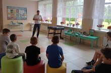 Утро началось с музыкальной зарядки. После завтрака отправились на рыбалку. Дети с большим удовольствием ловили рыбу. Угостились земляникой. День продолжился подвижными играми.