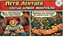 В комиксе «Личная гигиена» наш герой Петя вступает в увлекательную борьбу с армией коварных микробов. Вместе с ним юные читатели узнают, какие секретные приемы помогут победить невидимых врагов.