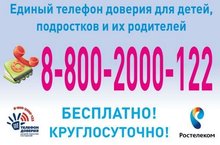 В жизни много трудностей и вопросов. Каждый человек может попасть в такую ситуацию, когда ему необходима помощь. В этот момент важно быть услышанным! Телефон доверия – это служба, куда можно анонимно, бесплатно и конфиденциально обратиться, чтобы обсудить отношения с друзьями и близкими, школьные и семейные отношения. При звонке на номер 8 – 800 – 2000 – 122 в любом населенном пункте Российской Федерации со стационарных или мобильных телефонов дети, и их родители могут получить экстренную психологическую помощь, которая оказывается специалистами действующих региональных служб.