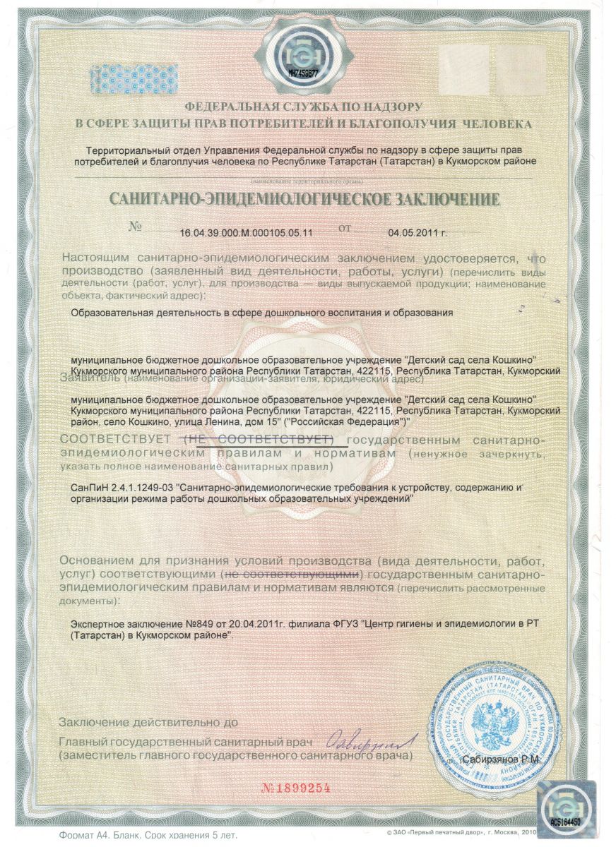 санитарно-эпидемиологическое заключение/санитар-эпидемиологик нәтиҗә