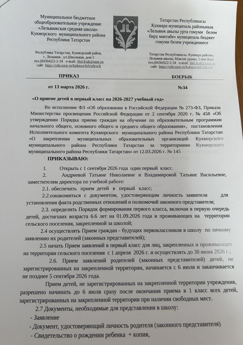 Муниципальное бюджетное общеобразовательное учреждение «Лельвижская средняя школа» Кукморского муниципального района Республики Татарстан/Татарстан Республикасы Кукмара муниципаль районының «Лельвиж авылы урта гомуми белем бирү мәктәбе» муниципаль бюджет гомуми белем учреждениесе