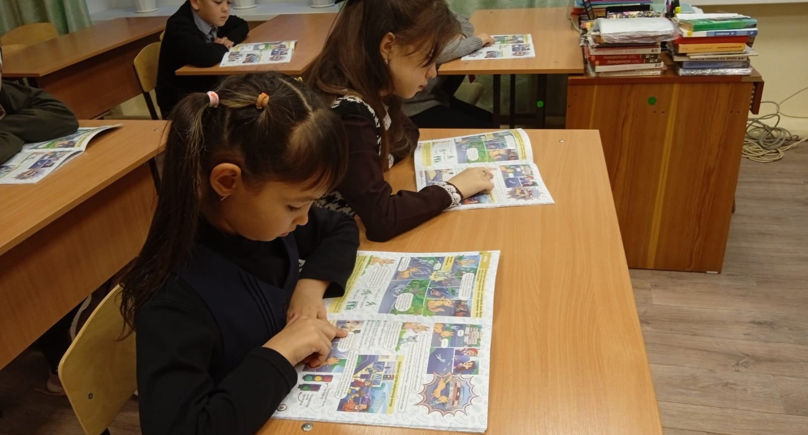 Приближается Всемирный день памяти жертв дорожно-транспортных происшествий. В связи с этим учащимся 5-х классов был вручен "Дневник безопасности ученика". Вместе с героями комиксов учащиеся знакомятся с основными правилами дорожного движения, учатся их применять с помощью заданий.