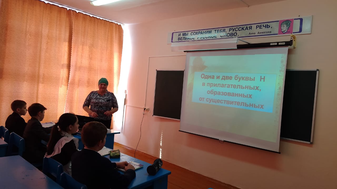 В рамках недели русского языка и литературы Зиганшина Рузалия Магсумовна с учащимися 10-11 классов провела внеклассное мероприятие-соревнование по литературе "Своя игра". А с учащимися 6 класса провела открытый урок по русскому языку на тему " Одна и две буквы "н" в суффиксах прилагательных".