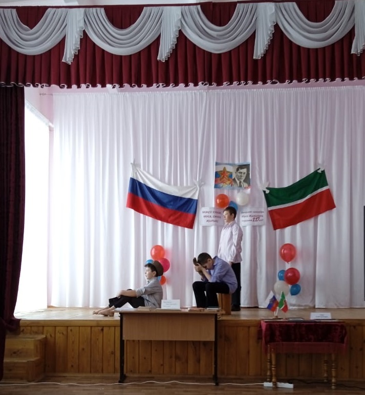Патриотик тәрбия айлыгы дәвам итә. Шушы айлык кысаларында китапханәче патриот шагыйрь Муса Җәлилнең туган көненә багышланган "Мәңге үлмәс, Муса, синең җырын!" дигән әдәби кичә оештырды. Иң элек кыскача шагыйрьнең тормыш юлы, эшчәнлеге белән таныштырды. Кичәнең өлеше шагыйрьнең шигырьләрен сәнгатьле итеп сөйлэү иде. Һәр сыйныф бу бәйгедә актив катнашты. Шулай ук "Җыр өйрәтте мине хөр яшәргэ, һәм үләргә кыю ир булып" дигән шагыйрьнең китапларыннан күргәзмә оештырылды.