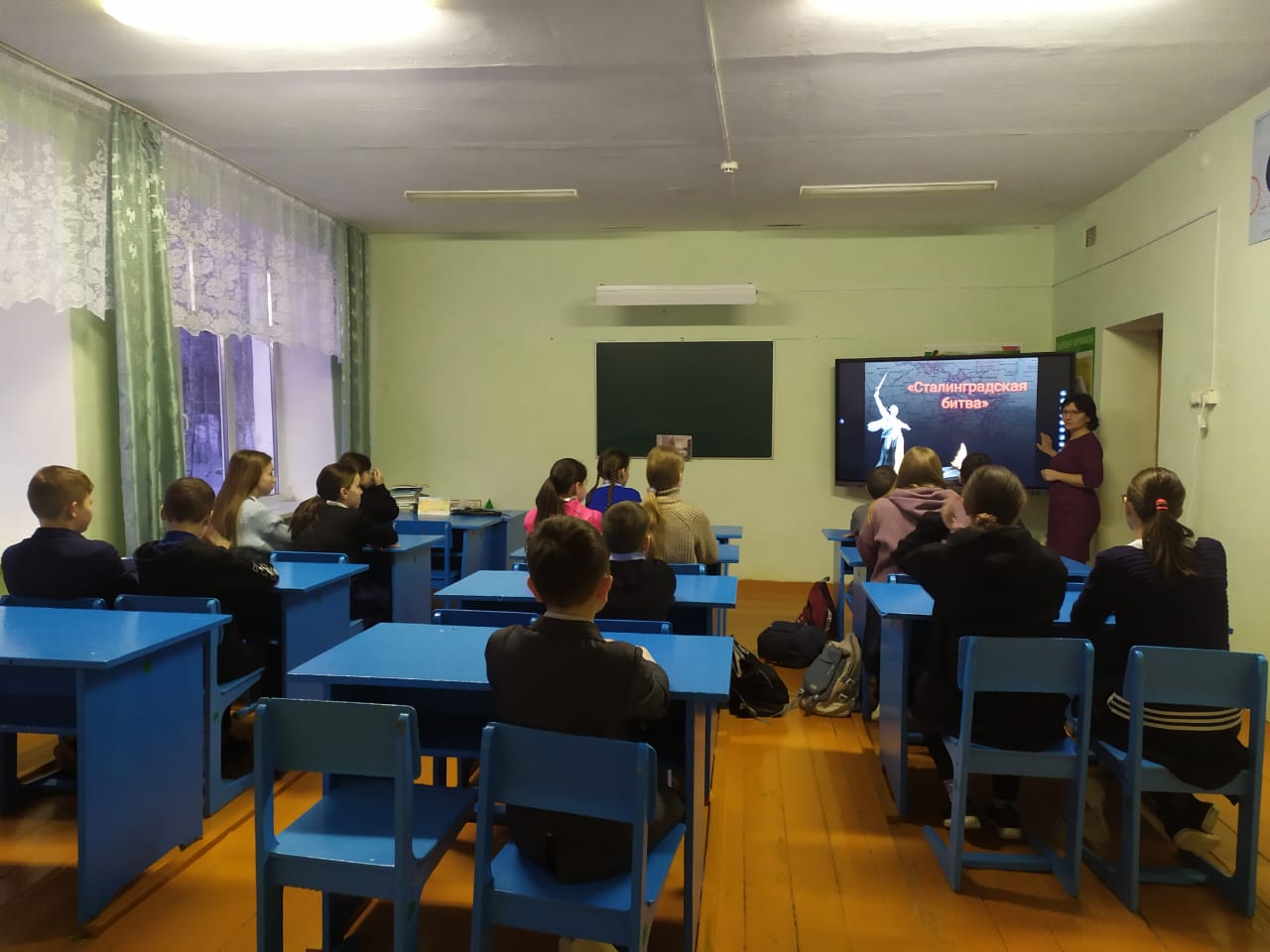 К 80-летию Победы в Сталинградской битве прошел "Библиотечный урок". Его провела для учащихся 5-8 классов руководитель Кошкинской сельской библиотеки Шакирова Г. М..