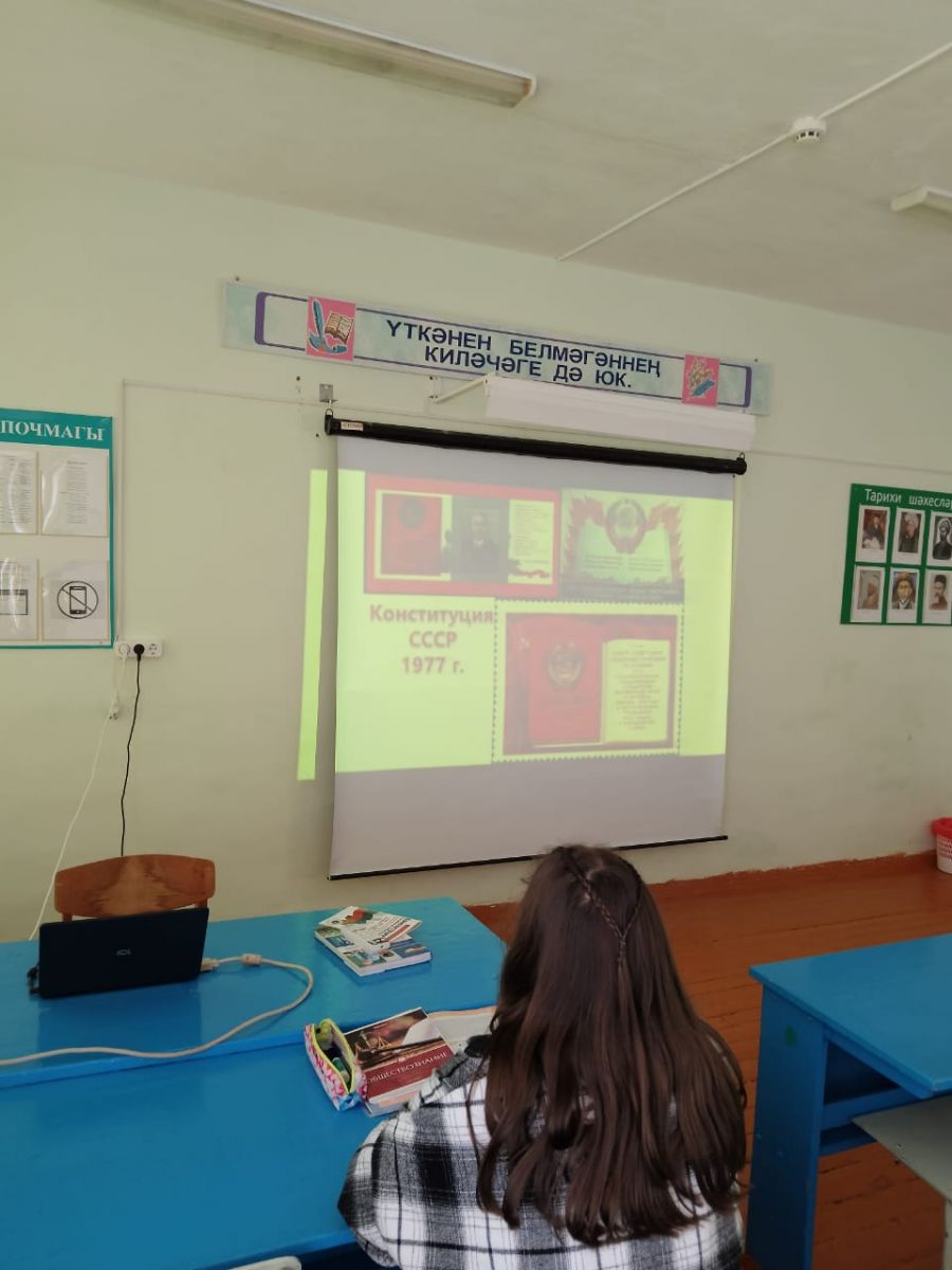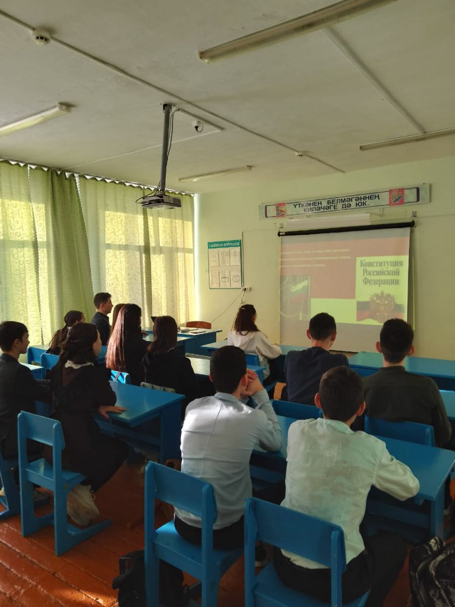 Тарих һәм җәмгыять белеме атналыгы кысаларында безнең мәктәптә РФ Конституциясе көненә багышланган дәресләр үткәрелде. Укучылар дәүләтнең төп законы эчтәлеген искә төшерделәр, хакимият тармаклары турындагы сорауларга җавап бирделәр, Россия гражданнарының хокуклары һәм бурычлары турында сөйләштеләр.